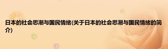 日本的社会思潮与国民情绪(关于日本的社会思潮与国民情绪的简介)
