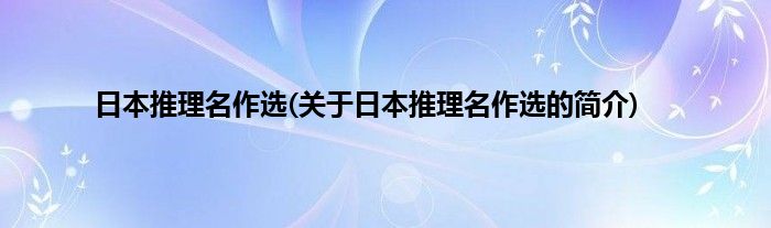 本文关于日本推理名作选的简介就讲解完毕,希望对大家有所帮助。
