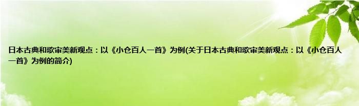 本文关于日本古典和歌审美新观点:以《小仓百人一首》为例的简介就讲解完毕,希望对大家有所帮助。