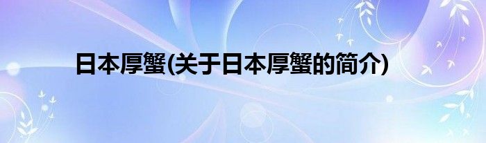 本文关于日本厚蟹的简介就讲解完毕,希望对大家有所帮助。