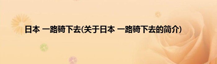 本文关于日本,一路骑下去的简介就讲解完毕,希望对大家有所帮助。