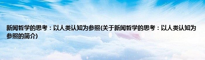 本文关于新闻哲学的思考:以人类认知为参照的简介就讲解完毕,希望对大家有所帮助。