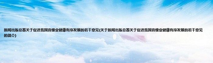 大家好,新闻出版总署关于促进我国音像业健康有序发展的若干意见,关于新闻出版总署关于促进我国音像业健康有序发展的若干意见的简介很多人还不知道,现在让我们一起来看看吧!