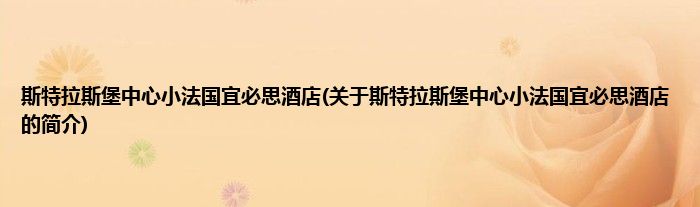 本文关于斯特拉斯堡中心小法国宜必思酒店的简介就讲解完毕,希望对大家有所帮助。