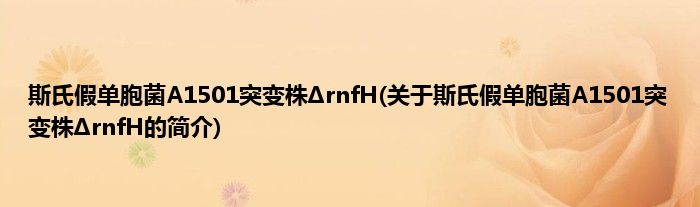 本文关于斯氏假单胞菌A1501突变株ΔrnfH的简介就讲解完毕,希望对大家有所帮助。