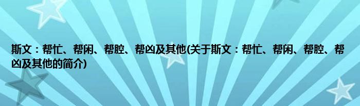 大家好,斯文:帮忙、帮闲、帮腔、帮凶及其他,关于斯文:帮忙、帮闲、帮腔、帮凶及其他的简介很多人还不知道,现在让我们一起来看看吧!
