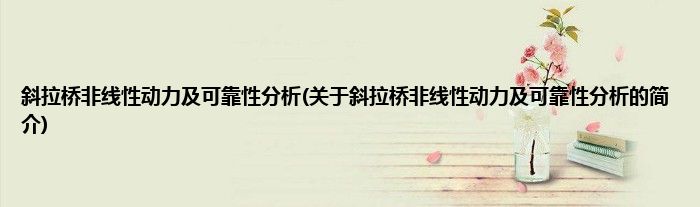大家好,斜拉桥非线性动力及可靠性分析,关于斜拉桥非线性动力及可靠性分析的简介很多人还不知道,现在让我们一起来看看吧!