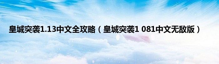 大家好,精选小编来为大家解答以上问题。皇城突袭1.13中文全攻略,皇城突袭1 081中文无敌版很多人还不知道,现在让我们一起来看看吧!