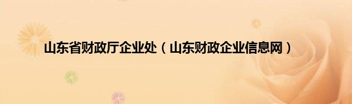 大家好,精选小编来为大家解答以上问题。山东省财政厅企业处,山东财政企业信息网很多人还不知道,现在让我们一起来看看吧!