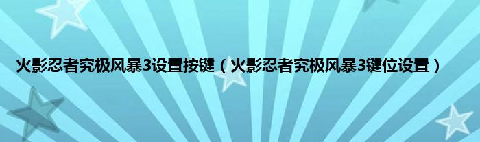大家好,精选小编来为大家解答以上问题。火影忍者究极风暴3设置按键,火影忍者究极风暴3键位设置很多人还不知道,现在让我们一起来看看吧!