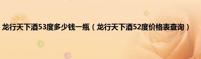 大家好,小科来为大家解答以上问题。龙行天下酒53度多少钱一瓶,龙行天下酒52度价格表查询很多人还不知道,现在让我们一起来看看吧!