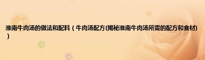 大家好,小科来为大家解答以上问题。淮南牛肉汤的做法和配料,牛肉汤配方(揭秘淮南牛肉汤所需的配方和食材)很多人还不知道,现在让我们一起来看看吧!