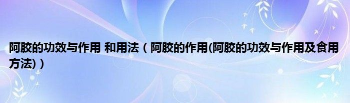 大家好,小科来为大家解答以上问题。阿胶的功效与作用 和用法,阿胶的作用(阿胶的功效与作用及食用方法)很多人还不知道,现在让我们一起来看看吧!