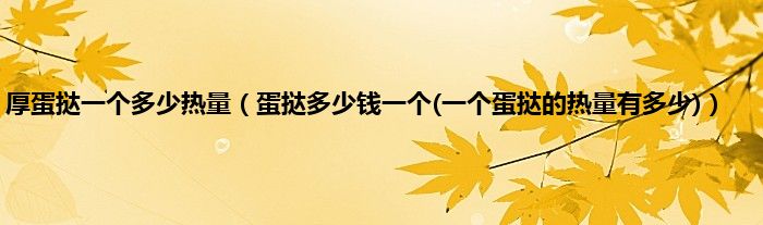 大家好,小科来为大家解答以上问题。厚蛋挞一个多少热量,蛋挞多少钱一个(一个蛋挞的热量有多少)很多人还不知道,现在让我们一起来看看吧!