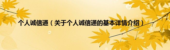 个人诚信通(关于个人诚信通的基本详情介绍)