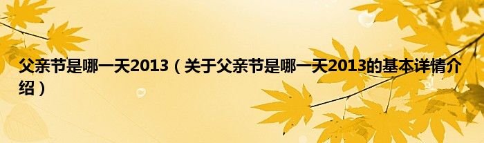 本文关于父亲节是哪一天2013的基本详情介绍就讲解完毕,希望对大家有所帮助。