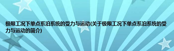 大家好,极限工况下单点系泊系统的受力与运动,关于极限工况下单点系泊系统的受力与运动的简介很多人还不知道,现在让我们一起来看看吧!