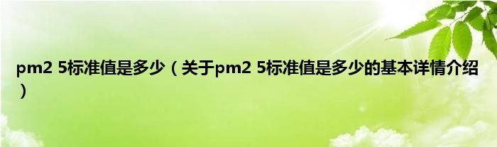 本文关于pm2 5标准值是多少的基本详情介绍就讲解完毕,希望对大家有所帮助。