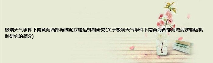 极端天气事件下南黄海西部海域泥沙输运机制研究(关于极端天气事件下南黄海西部海域泥沙输运机制研究的简介)