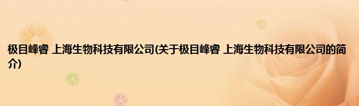 大家好,极目峰睿 上海生物科技有限公司,关于极目峰睿 上海生物科技有限公司的简介很多人还不知道,现在让我们一起来看看吧!