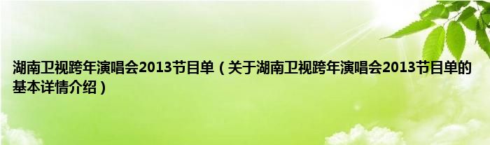 湖南卫视跨年演唱会2013节目单(关于湖南卫视跨年演唱会2013节目单的基本详情介绍)