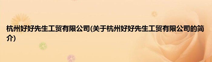 大家好,杭州好好先生工贸有限公司,关于杭州好好先生工贸有限公司的简介很多人还不知道,现在让我们一起来看看吧!