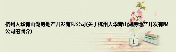 本文关于杭州大华青山湖房地产开发有限公司的简介就讲解完毕,希望对大家有所帮助。