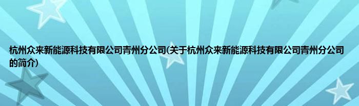 本文关于杭州众来新能源科技有限公司青州分公司的简介就讲解完毕,希望对大家有所帮助。