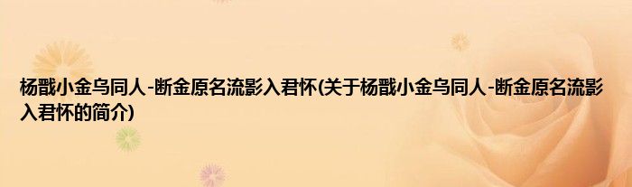 本文关于杨戬小金乌同人-断金原名流影入君怀的简介就讲解完毕,希望对大家有所帮助。