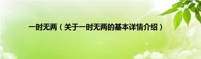 本文关于一时无两的基本详情介绍就讲解完毕,希望对大家有所帮助。