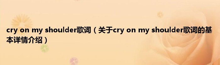 本文关于cry on my shoulder歌词的基本详情介绍就讲解完毕,希望对大家有所帮助。