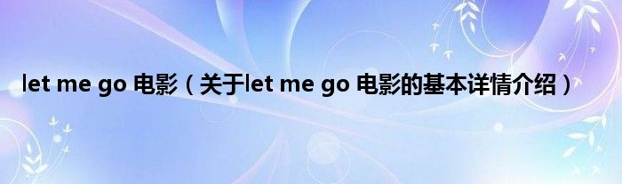 本文关于let me go 电影的基本详情介绍就讲解完毕,希望对大家有所帮助。