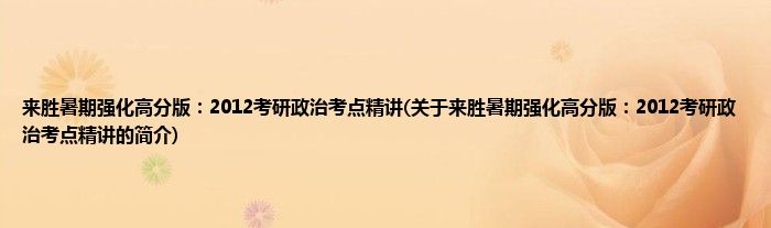 大家好,来胜暑期强化高分版:2012考研政治考点精讲,关于来胜暑期强化高分版:2012考研政治考点精讲的简介很多人还不知道,现在让我们一起来看看吧!