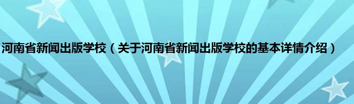 本文关于河南省新闻出版学校的基本详情介绍就讲解完毕,希望对大家有所帮助。