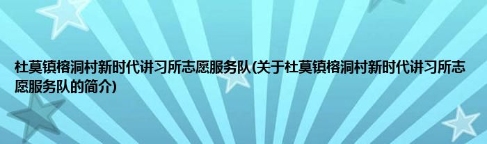 大家好,杜莫镇榕洞村新时代讲习所志愿服务队,关于杜莫镇榕洞村新时代讲习所志愿服务队的简介很多人还不知道,现在让我们一起来看看吧!