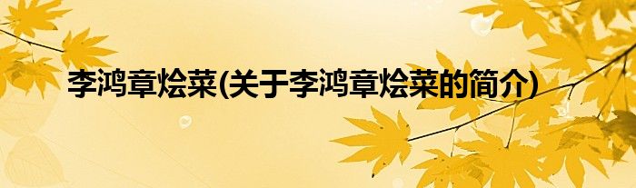 本文关于李鸿章烩菜的简介就讲解完毕,希望对大家有所帮助。