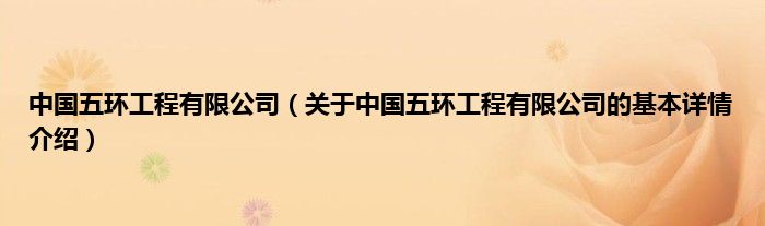 本文关于中国五环工程有限公司的基本详情介绍就讲解完毕,希望对大家有所帮助。