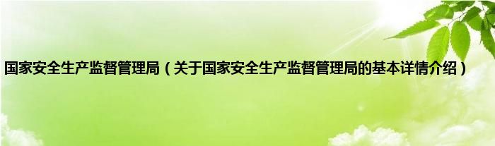 本文关于国家安全生产监督管理局的基本详情介绍就讲解完毕,希望对大家有所帮助。