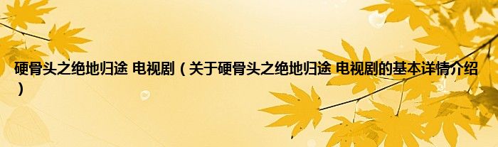 本文关于硬骨头之绝地归途 电视剧的基本详情介绍就讲解完毕,希望对大家有所帮助。