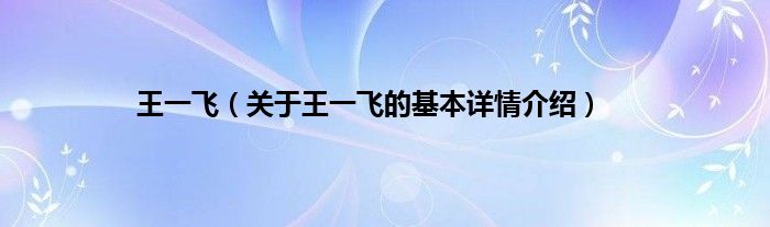 本文关于王一飞的基本详情介绍就讲解完毕,希望对大家有所帮助。