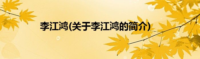 大家好,李江鸿,关于李江鸿的简介很多人还不知道,现在让我们一起来看看吧!