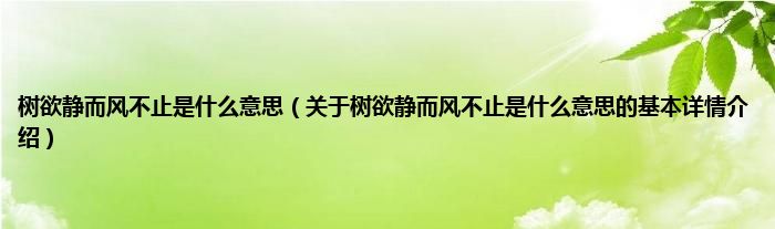 本文关于树欲静而风不止是什么意思的基本详情介绍就讲解完毕,希望对大家有所帮助。