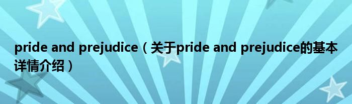 本文关于pride and prejudice的基本详情介绍就讲解完毕,希望对大家有所帮助。