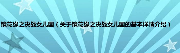 本文关于镜花缘之决战女儿国的基本详情介绍就讲解完毕,希望对大家有所帮助。