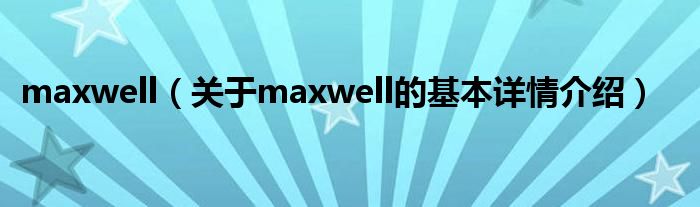 本文关于maxwell的基本详情介绍就讲解完毕,希望对大家有所帮助。