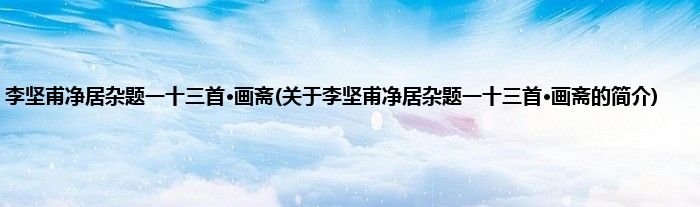 本文关于李坚甫净居杂题一十三首·画斋的简介就讲解完毕,希望对大家有所帮助。