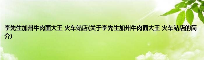 本文关于李先生加州牛肉面大王 火车站店的简介就讲解完毕,希望对大家有所帮助。