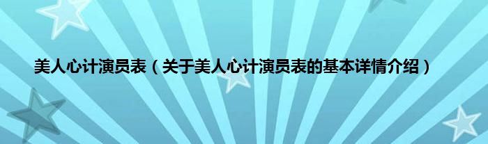 本文关于美人心计演员表的基本详情介绍就讲解完毕,希望对大家有所帮助。