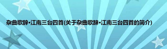 杂曲歌辞·江南三台四首(关于杂曲歌辞·江南三台四首的简介)