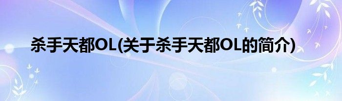 大家好,杀手天都OL,关于杀手天都OL的简介很多人还不知道,现在让我们一起来看看吧!